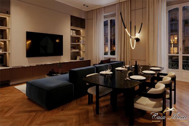 In via San Dalmazzo 24, di fronte al giardino Lamarmora ed all'angolo con via Bertola, nel cuore di Torino, sorge un magnifico palazzo d'epoca finemente mantenuto e dotato di servizio di portineria. In questo contesto esclusivo proponiamo in vendita un raffinato appartamento di 150 mq situato al secondo piano con ascensore. L'appartamento, la cui consegna è prevista entro il 30 maggio 2026, sarà completamente rinnovato con una ristrutturazione di alto livello, pensata per offrire comfort moderni e un'atmosfera di autentico pregio.